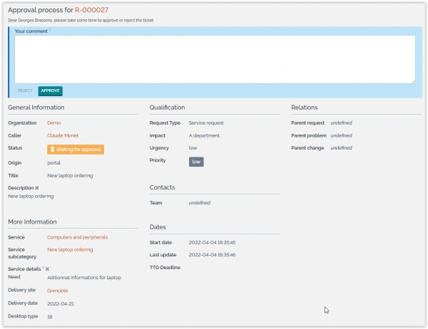 Only one level of approbation is supported by this module, and the approver has to be selected manually by a support agent