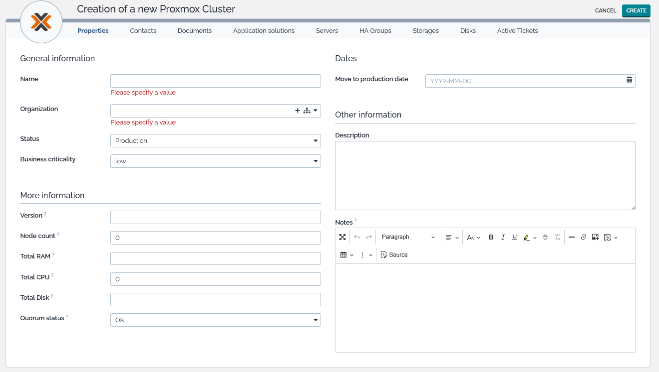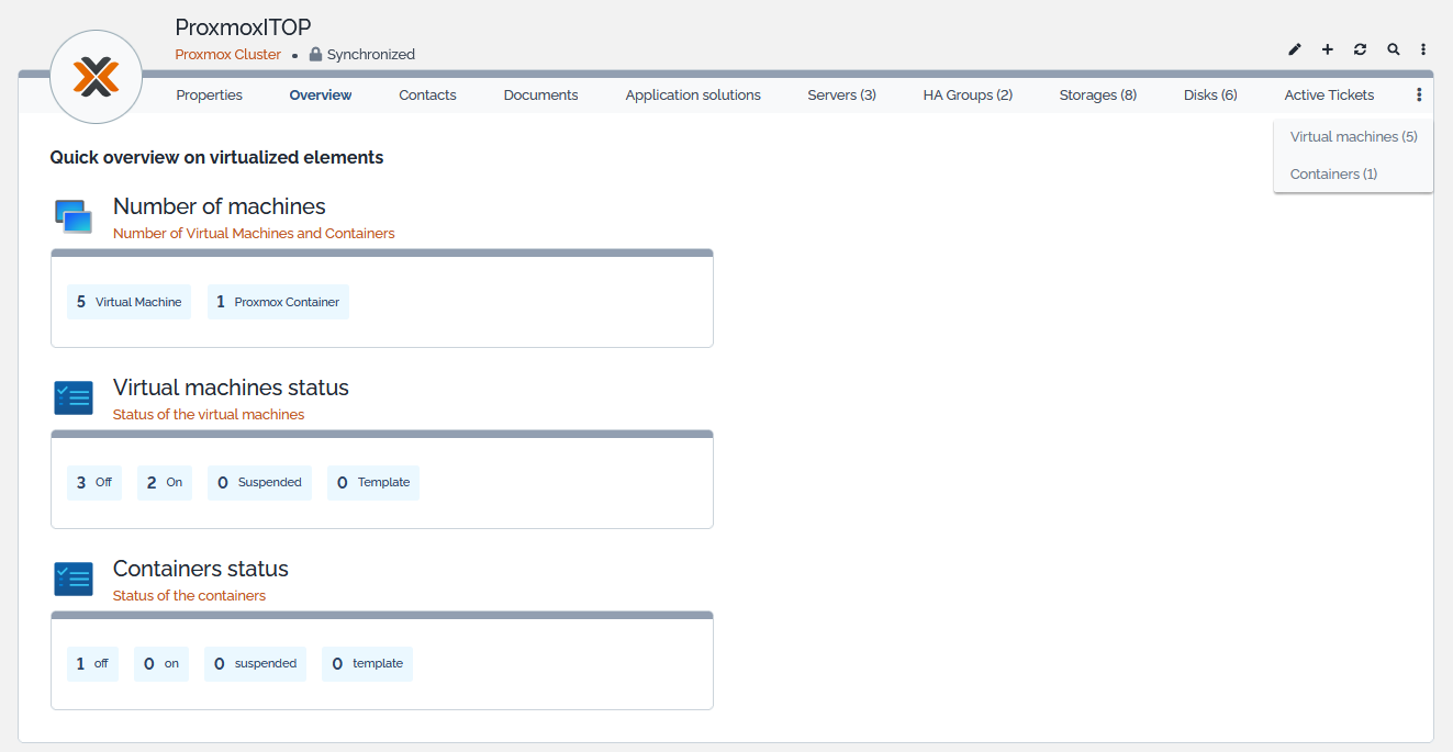 With Data model for Proxmox, you will be able to enrich your CMDB with Proxmox's virtualization elements that are not part of iTop's default CIs. You will be able to create or enhance a set of classes dedicated to or related to Proxmox. Together with the Data collector for Proxmox, it enables Proxmox administrators to fetch in iTop the key elements of their Proxmox infrastructure.